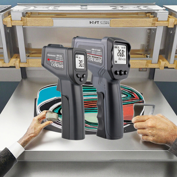 Kaemeasu-Termómetro de infrarrojos de doble láser industrial OEM/ODM, alarma de alta temperatura de 50 ~ 1600C, material ABS + PC, 1 año, 1 año